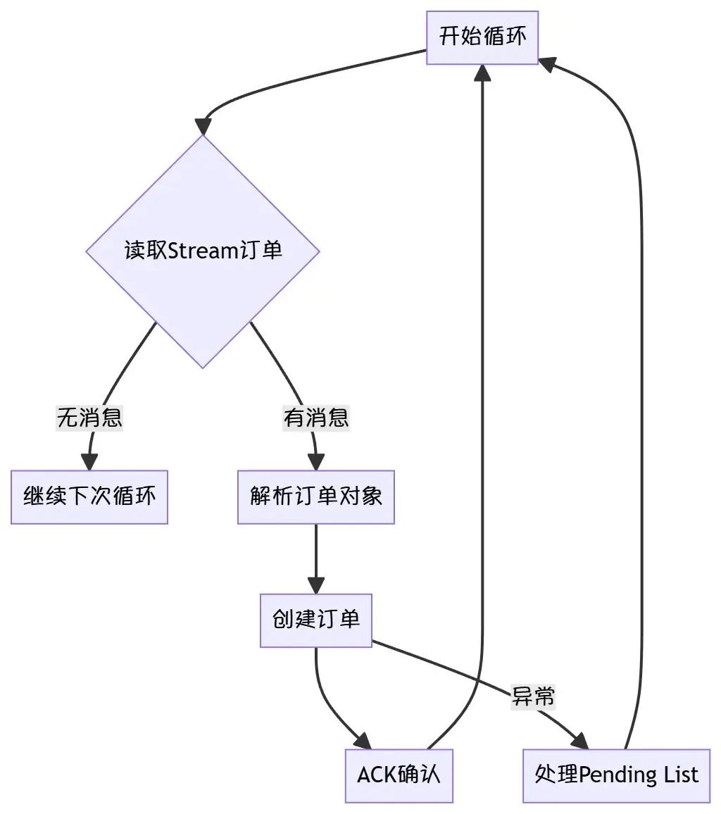 ReadOffset.lastConsumed():表示只读取该消费者组未处理的新消息(已读未ACK的消息不重复读取)