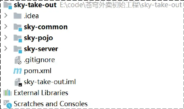 | 1 | sky-take-out | maven父工程,统一管理依赖版本,聚合其他子模块 |