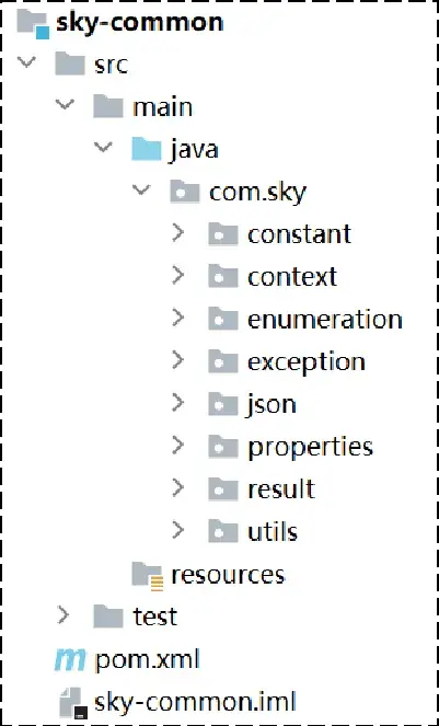 | 2 | sky-common | 子模块,存放公共类,例如:工具类、常量类、异常类等 |