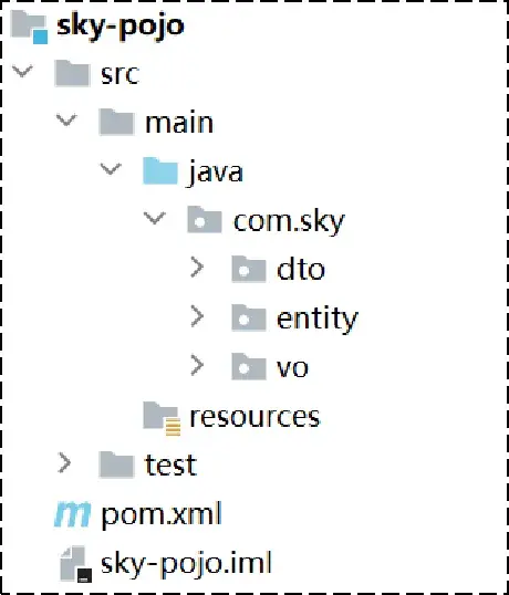 | 3 | sky-pojo | 子模块,存放实体类、VO、DTO等 |
