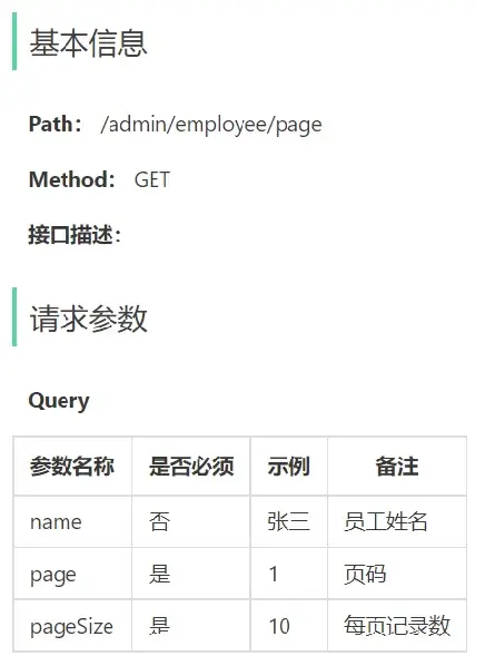 | 员工管理 | 管理员可以在系统后台对员工信息进行管理,包含查询、新增、编辑、禁用等功能 |